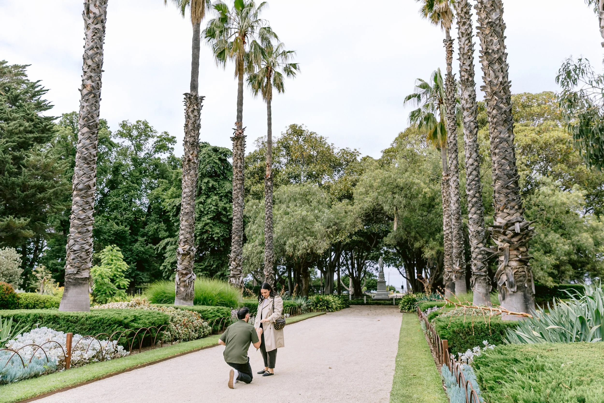 The plan was for Nathan to ask Monica to walk ahead so he could “take a photo” of her, and then she would turn to see him down on one knee. But the moment Monica spotted me in the gardens, she cheekily asked, “Why can’t we get that lady to take the photo?” and Nathan had to insist, with a laugh, that he really would take the photo himself. Her persistence and his playful insistence made for one of the most charming moments, and it gave us all a good laugh once she realized what was really happening!