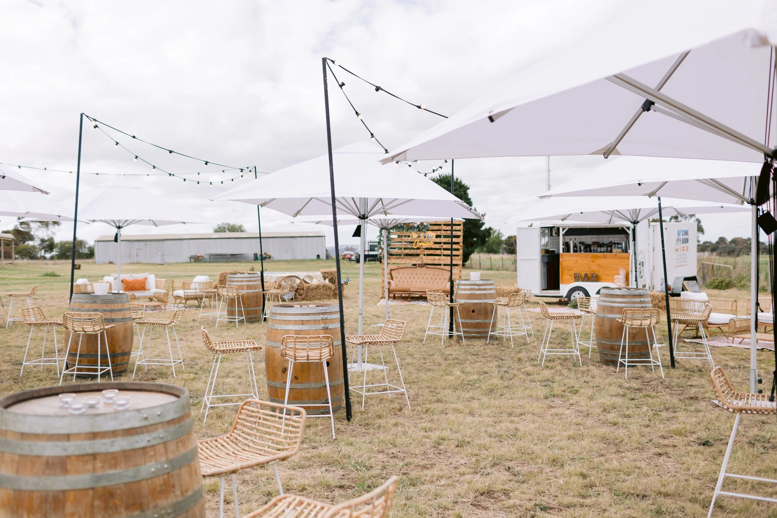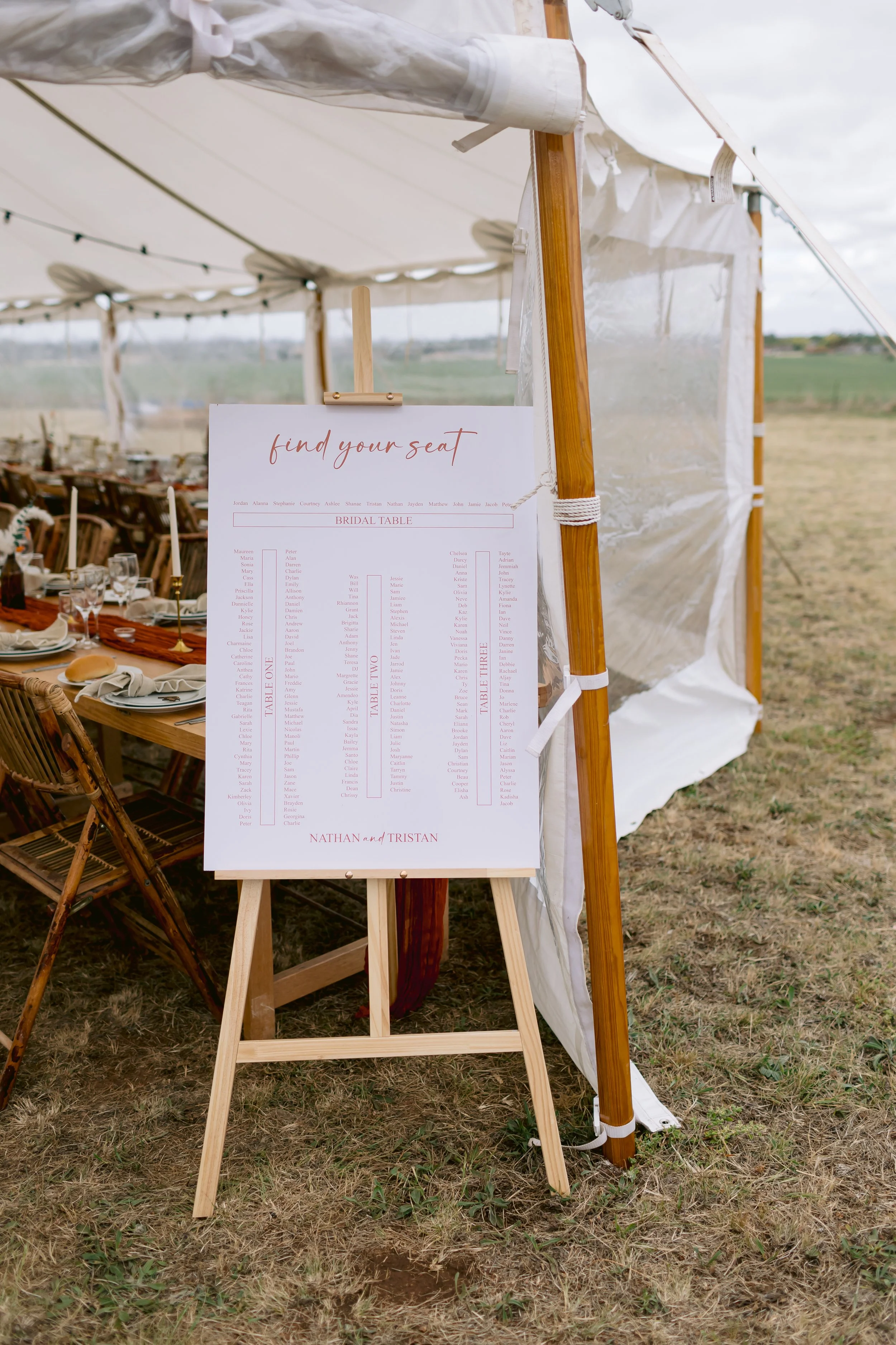 The couple looked stunning with Tristan in Luv Bridal & Ferrari Formal Wear and Nathan perfectly styled for this chic outdoor celebration. Hair and makeup by Aimee Rapa, Jem Bala, and Kat from Bombshell Hair Co added the finishing touches, complementing the luxurious, ethereal vibe of the tented reception.